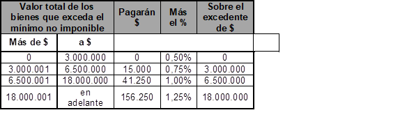 - Se establece el siguiente esquema de alícuotas progresivas que varían entre el 0,50% y el 1,25%, según la magnitud de los bienes sujetos a imposición del contribuyente: