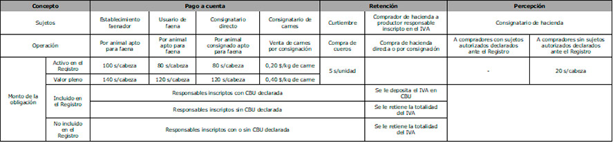 Se actualizan los importes de los regímenes de retención, percepción y pagos a cuenta del impuesto al valor agregado en relación con el régimen de operadores de la cadena de producción y comercialización de haciendas y carnes bovinas y bubalinas, los que se aplicarán a partir del 1/5/2019.